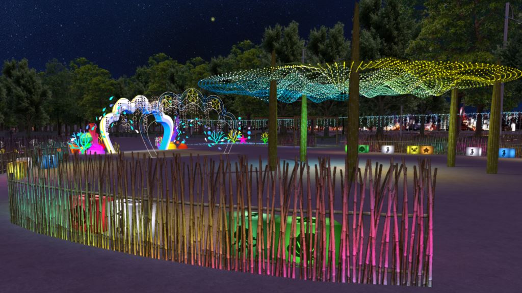 嘉義東石、布袋,是全台最大的養蚵基地,蚵殼可作為農業資材(改良土壤、肥料、飼料)、環境工程(淨水、海水酸化改善、防波塊、路面透水材)、建材(蚵灰/蚵殼粉替代水泥、抹牆)、工業品(抗菌鞋、塑膠複合材料、洗潔劑)、保健/美容(中藥、面膜、珍珠層胜肽)及文創產品(藝術品、飾品)等,轉化為高附加價值綠色循環材料。「蚵棚之境」由廢棄蚵棚竹材構成,廢棄漁網化成時光芎頂,蚵殼串吊飾懸掛隨風輕晃搖曳,嘉義縣新岑國小師生創作的海廢共創作品點綴其間,在燈光點點下宛如海洋星空,傳遞新生的力量,訴說著「廢棄物也能發光」的創意行動。嘉義布袋的沙洲地形曾面臨海岸內縮的危機,也連帶威脅到在地漁業,布袋「好美社區」居民2015年開始進行「築籬擋沙」計畫,利用在地植物建立圍籬,有效減少風沙侵襲,逐步恢復沙灘面積,並獲環境部認可。截至目前,築籬擋沙行動已成功復育超過33公頃的沙灘,並且帶動了當地觀光,成為遊客與家庭的熱門地點,「永續海洋燈區」內由好美里居民參與製作的「築籬擋沙」,是嘉義沿海永續智慧,引領大家踏入環保行動的真實場景。這些成就都將在燈會中呈現給大眾。
