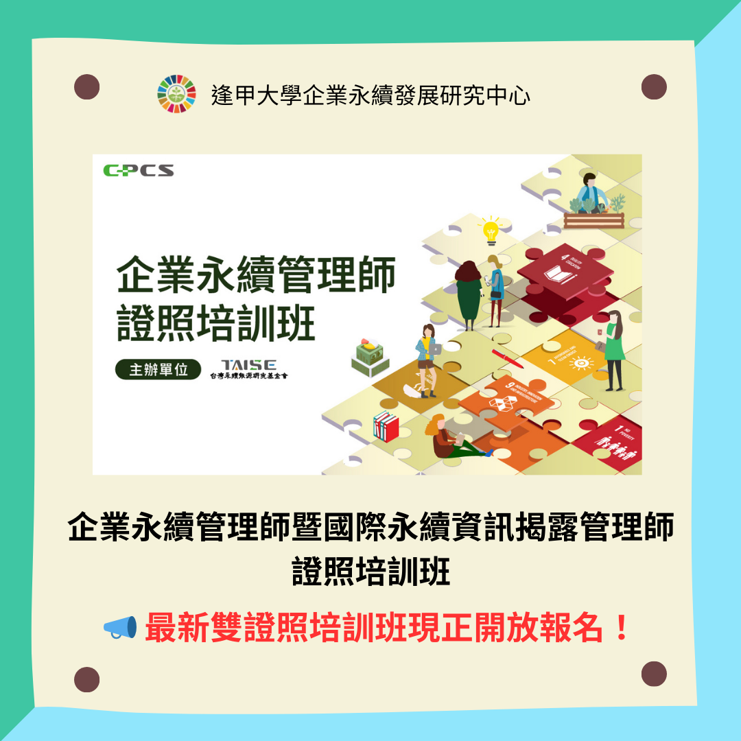 逢甲大學攜手台灣企業永續學院,推出 「企業永續管理師暨國際永續資訊揭露管理師」證照培訓班。
